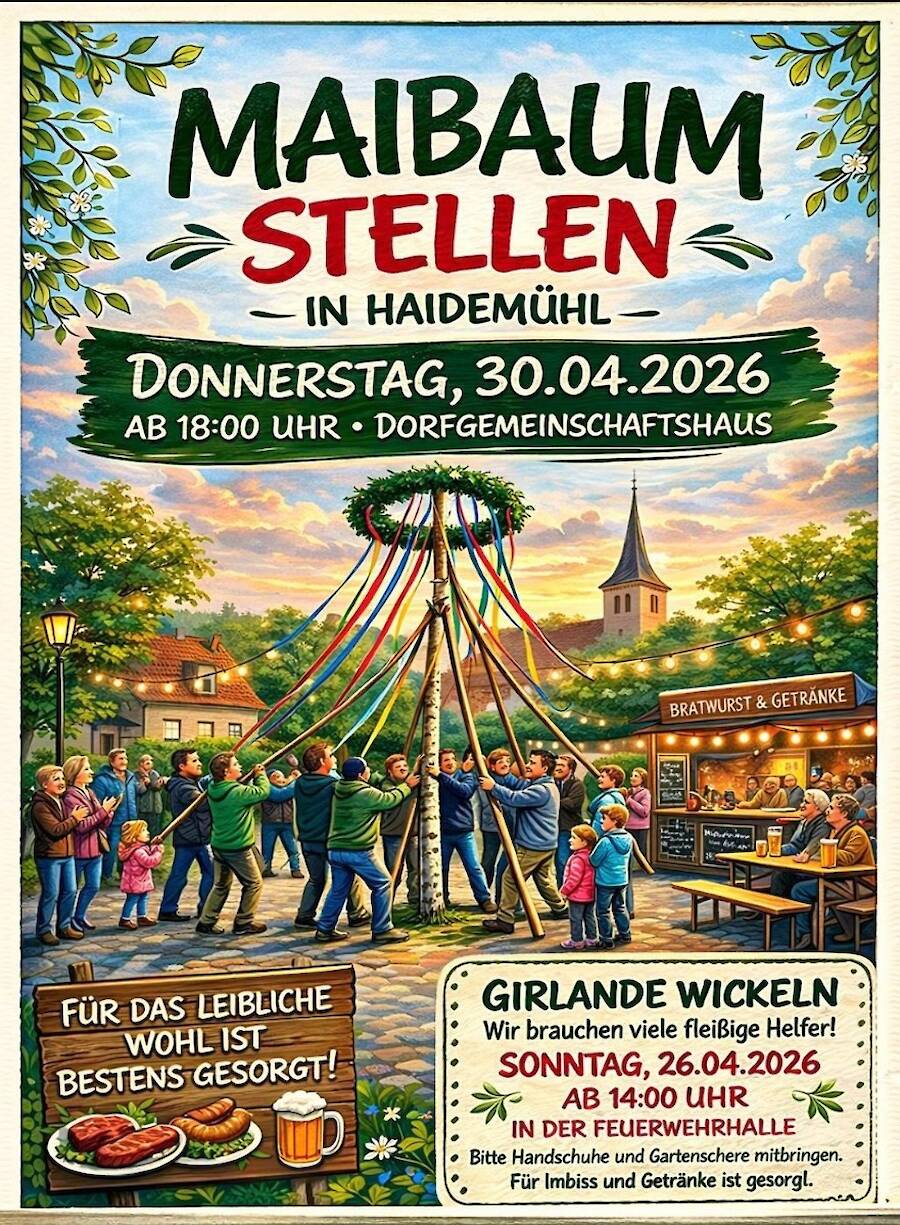 Auch in diesem Jahr laden wir alle herzlich zum Maibaumstellen ein. Eine schöne altbewährte Tradition....