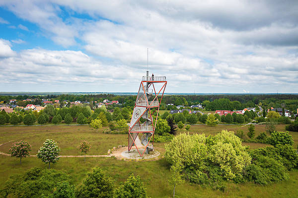 Der Aussichtsturm im Park der Erinnerungen wurde vom damaligen Energieunternehmen Vattenfall Europe Mining (heute LEAG) an die Gemeinde Haidemühl für den neuen entstanden Ort gestiftet. Der Turm symbolisiert die Industrie vom einstigen Altstandort - die Schornsteine der ehemaligen Glasfabrik und der ehemaligen Brikettfabrik. Am Turm befinden sich Banner mit Bildern der damaligen Schule, des Glaswerkes und dem Haideglaslogo.